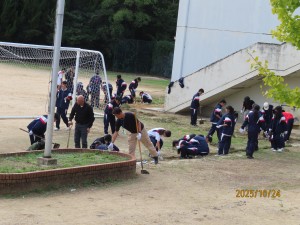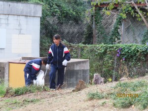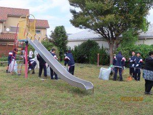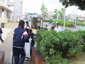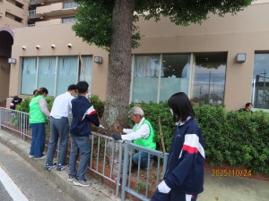 | 10月24日(金) 地域清掃 生徒会と部活動のみなさんが約300人参加して、地域の民生員の方々と一緒に下松駅前や公園の清掃をしました。 |