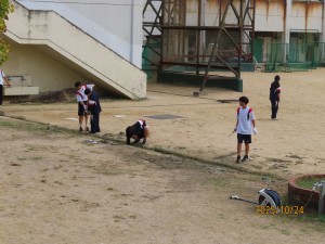 | 9月4日(木) 昼休み 暑い中ですが、「ボール運び大会」の練習をクラス毎に取り組んでいます。夜のPTA実行委員会で様子をお知らせしました。 |