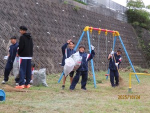| 10月17日(金)たくさんの地域の方や保護者の方に見守られながら、それぞれが精一杯力を出し切り頑張りました。最後まで諦めない姿と、生徒会のメンバーによる実況中継が大会を大いに盛り上げてくれました。 |