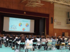 | 4月16日(水) 1年生 学年集会で通級担当の先生が、目に見えない障がいの理解や通級指導についてお話してくれました。 |