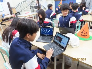 | 10月31日(金) 3年生 ニュージーランドの学生と英語でonline国際交流をしました。ハロウィーンのコスチュームでアイスブレイキング。 |