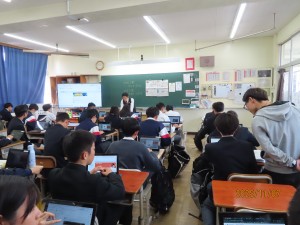 | 12月10日(水) 3年生 ZOOMでフィリピンの中学生と英語で交流しました。 |