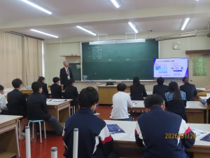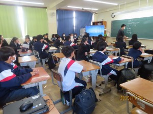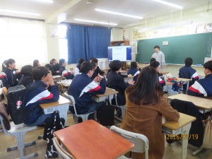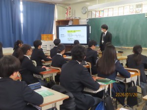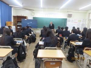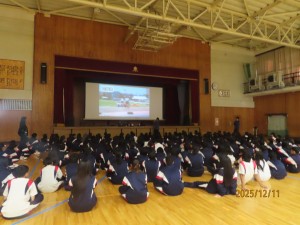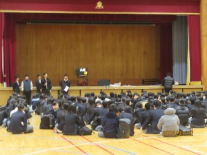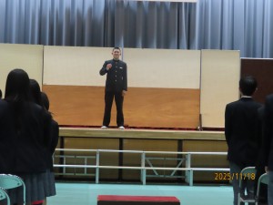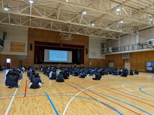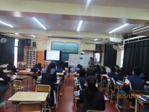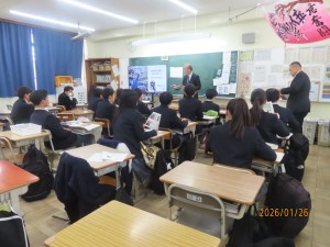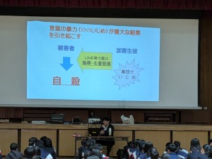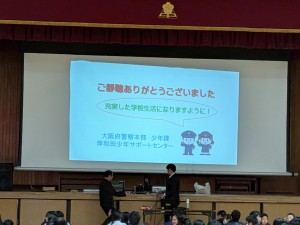 | 12月3日(水) 1年生 非行防止教室 岸和田サポートセンターの方に来ていただき、お話していただきました。 |