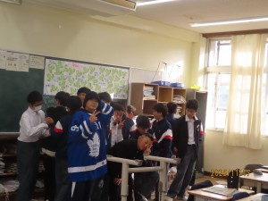 | 全校クラス対抗 「豆マッチ」予選② 3年生4クラス、2年生4クラス、1年生2クラス 担任の先生も力が入ります! |