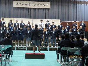| 11月18日(木) 合唱コンクール本番!各学年それぞれ成長を実感する素晴らしい歌声でした!たくさんの保護者の方に聴いていただきました。 |