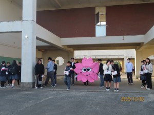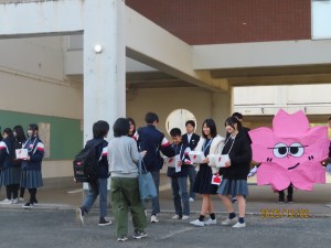 | 11月21日(金) 生徒会 「赤い羽根共同募金」サクラッキーと一緒に呼びかけました。 |