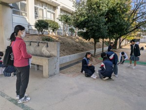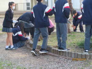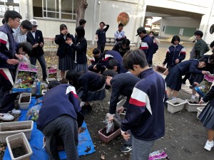 | 専門委員会の時間にPTAのみなさんや地域の美化・環境委員のみなさんと一緒に美化委員が花植え活動をしました。その後、給食配膳室横の瓦礫を片付けてくれました。暑い中、ありがとうございました。 |