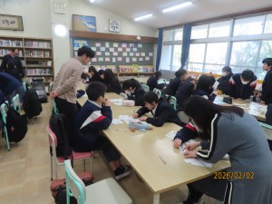 | 2月2日(月) 専門委員会美化委員のみなさんが、中庭の不要な瓦礫を撤収してくれました。図書委員会はおすすめ本の紹介カードを作成、体育委員会は最後のクラスマッチを企画していました。 |