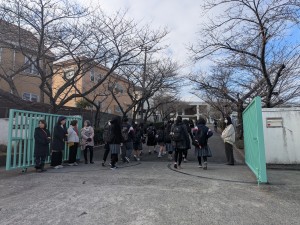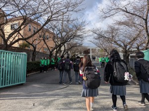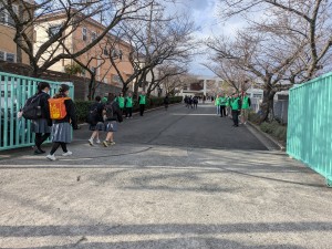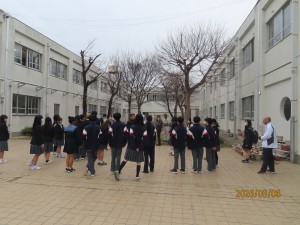 | 2月16日(月) 更生保護女性会の方々が、朝早くから挨拶運動をしてくださいました。6限の全校集会では、広島市から送られた「被爆アオギリ二世」の紹介と、「平和愛する心」「命あるものを大切にする心」を継承してほしいことを伝えました。 |