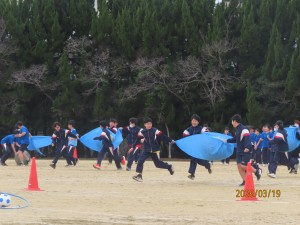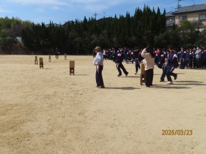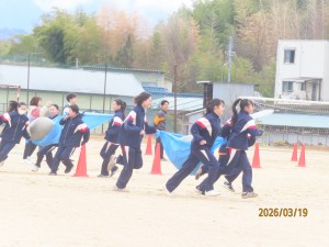 | 3月19日(木) 2年生 クラスマッチ 競技はフラフープくぐり、バレーボール円陣パス、玉入れ、大玉運び、チャレンジ種目、クラス全員リレーの6種目 盛り上がりました! |