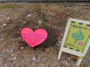 | 3月26日(木) 被爆アオギリのモニュメント 生徒会のみなさんが言葉を紡ぎ、校務員さんと生徒会の先生が制作してくれました。 |