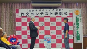 | 9月29日(月) 第75回”社会を明るくする運動”作文コンテスト 岸和田市542人の中から市長賞と教育長賞に選ばれて表彰されました。 |